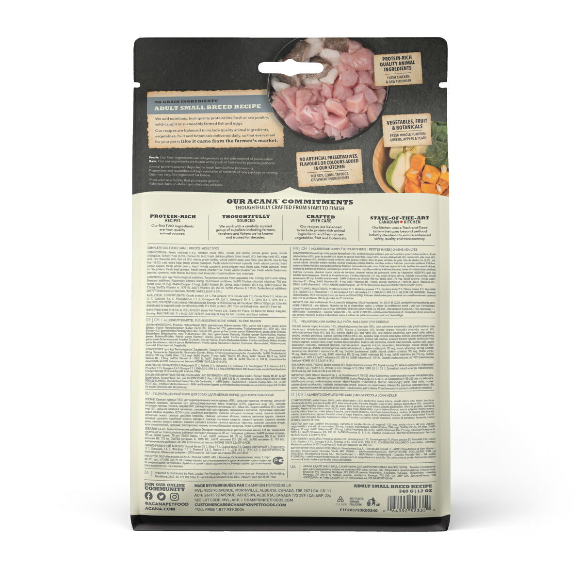 アカナ ACANA ドッグフード アダルトスモールブリードレシピ 小型犬 成犬用 穀物不使用 340g 正規品 無添加 グレインフリー