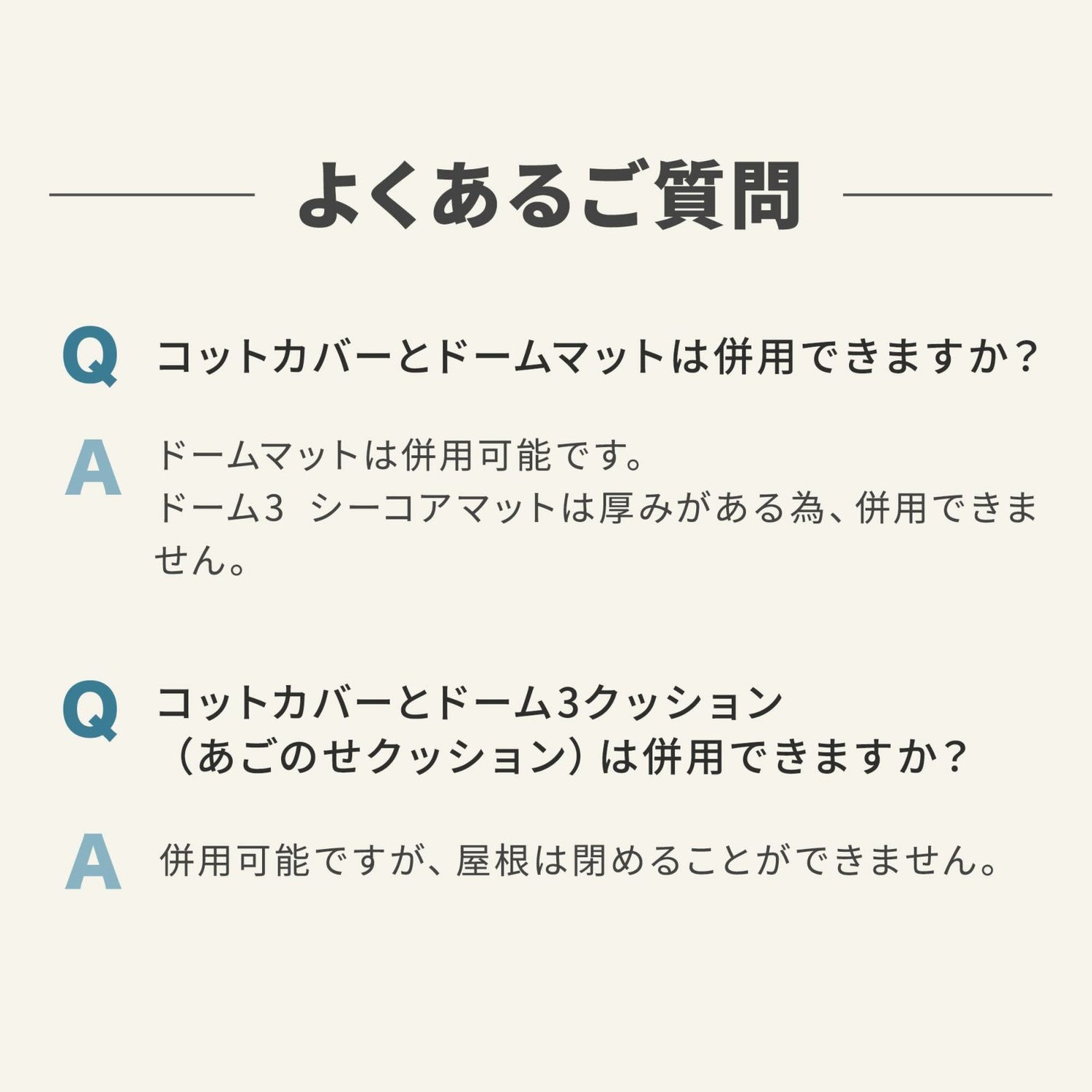 | 『装着方法』 1. DOME3に付属している底板を取り出す 2. カバー本体をコットにかぶせる 3. 底板に底板用カバーをかぶせる 4. 最後に底板カバーをかぶせた底板を戻す | |