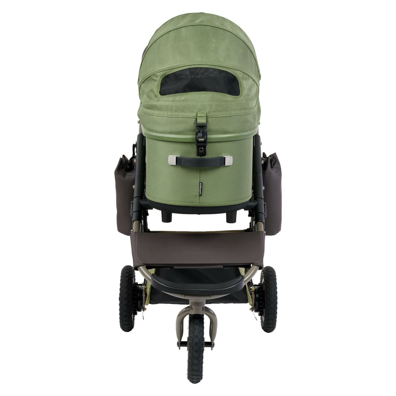 今シーズン新たに加わる新色は、都市にも自然にも溶け込むアーバンアウトドアをイメージした「SEED BEIGE(シードベージュ)」と「MOSS GREEN(モスグリーン)」。ペットが乗るコットのカラーに合わせてフレームやタイヤリム、ハンドルのヴィーガンレザーの配色までこだわりました。