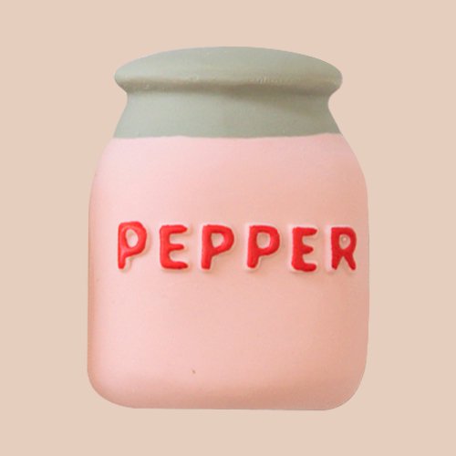 愛犬と楽しいおままごとシリーズお料理に欠かせない塩・胡椒が、ラテックス製のドッグトイになりました!ラテックスの感触とピーピー音で、わんちゃんの遊び心をくすぐります。小型のわんちゃんでも咥えやすい、小さめサイズのおもちゃです。無毒性の天然ラテックスを使用しているので、わんちゃんがカミカミしても安心。適度な弾力があるので、ポーンと投げて持って来い遊びも楽しめます。