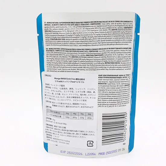 避妊・去勢後の健康をサポート!本能に寄り添うBwildイタリア産ウェットフード猫が本来求める「本能に沿った食事」をコンセプトに、動物由来成分を65%以上配合したウェットフードです。動物由来の原材料には、機能性成分、スーパーフード、フルーツや野菜など、栄養特性や動物の生理機能をサポートするために厳選されたものが配合されています。