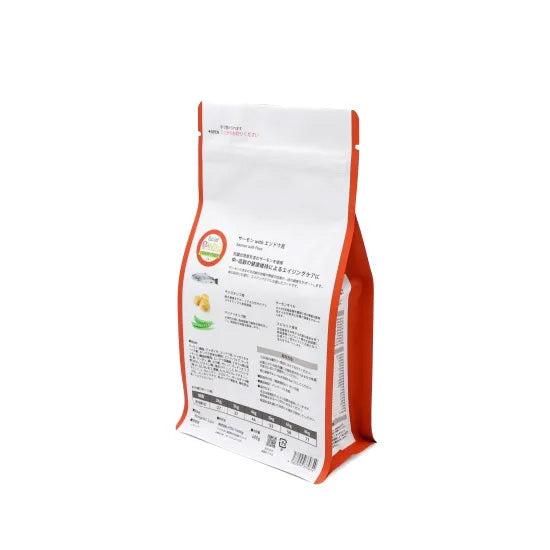 原材料 | サーモン、鶏脂、ジャガイモ、エンドウ豆、ジャガイモタンパク濃縮物、タンパク加水分解物、ビートパルプ、サーモンオイル、ビール酵母、ミネラル類(亜鉛、鉄、マンガン、銅、ヨウ素、セレン、ナトリウム、塩化物)、マンナンオリゴ糖(MOS)、ビタミン類(A、D3、E)、スピルリナ原末、キシロオリゴ糖(XOS)、ユッカシジゲラ、乳清タンパク、自然保存料酸化防止剤(トコフェロール) |