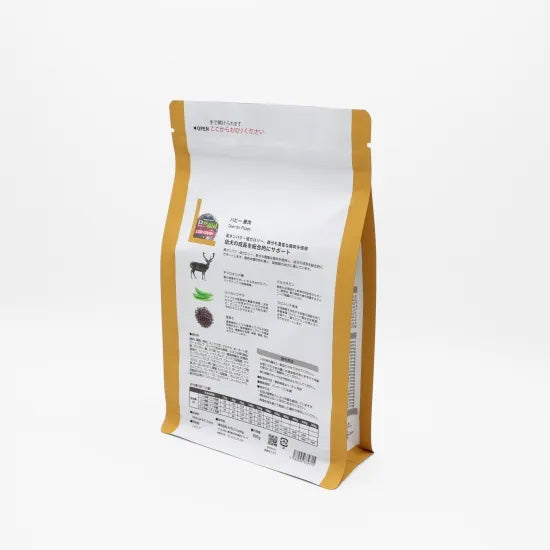 原材料 | 鹿肉、鶏脂、鶏肉、エンドウ豆、タピオカ、米、オーツ麦、ビートパルプ、タンパク加水分解物、ミネラル類(亜鉛、鉄、マンガン、銅、ヨウ素、セレン、ナトリウム、塩化物)、ビール酵母、乾燥卵、亜麻仁、ニンジン、トマトパルプ、パイナップルパルプ、りんごパルプ、ブルーベリーパルプ、クランベリーパルプ、ラズベリーパルプ、キシロオリゴ糖(XOS)、ビタミン類(A、D3、E)、加水分解軟骨(コンドロイチン源)、加水分解甲殻類(グルコサミン源)、加水分解酵母(MOS源)、スピルリナ原末、ユッカシジゲラ、自然保存料酸化防止剤(トコフェロール) |