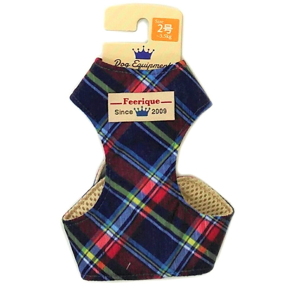 フェリーク オリジナルチェックベストハーネス 2号 ネイビー 胴輪 小型犬