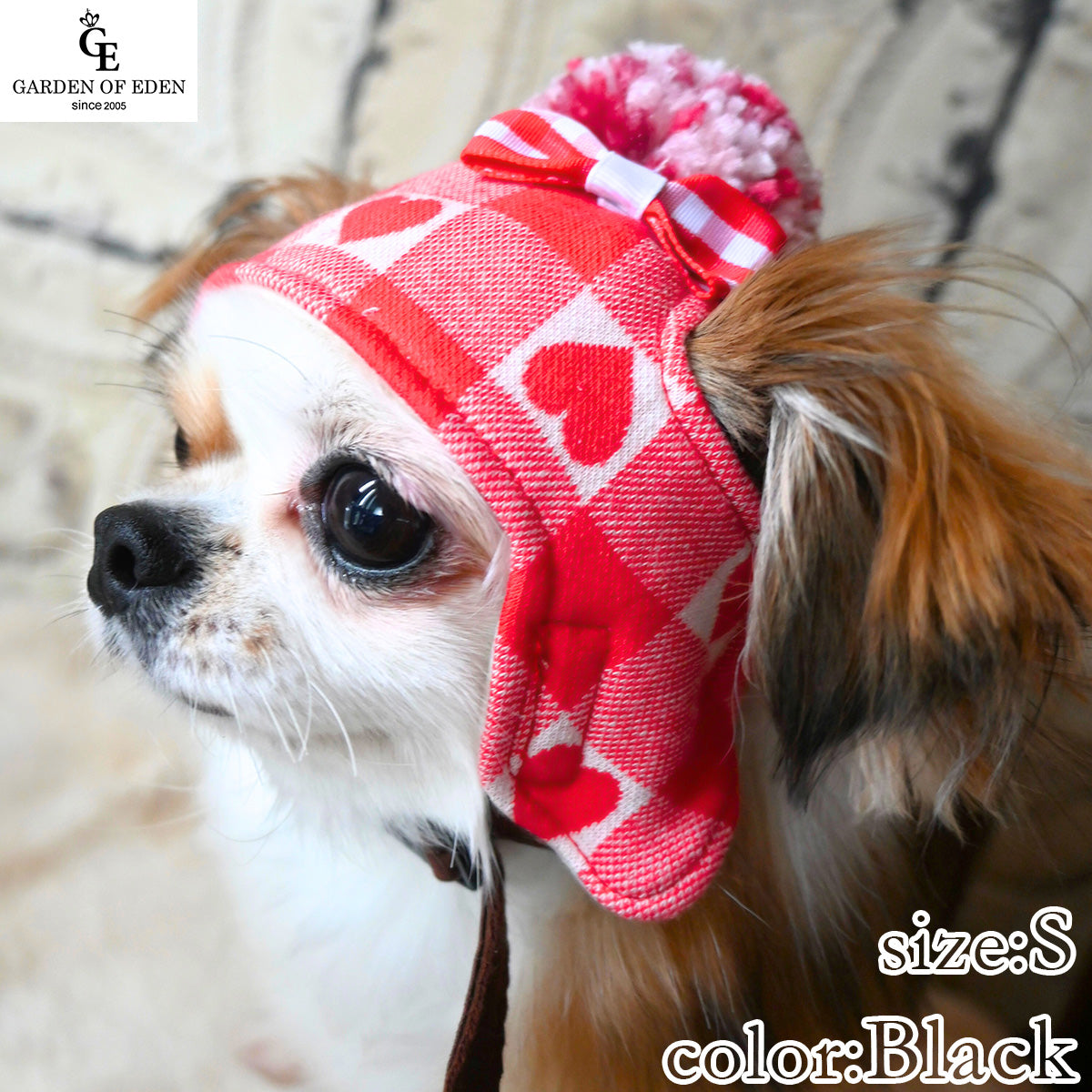 犬の帽子 ガーデンオブエデン ハートチェックニット帽 XS ブラック