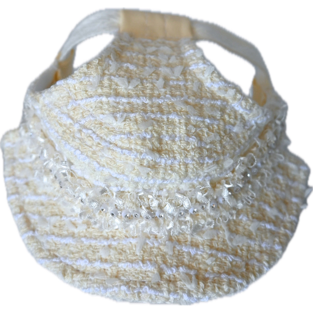 イタリア製高級ツイード生地を使用したハット。上質な素材ならではの上品な風合いとビジューレースがきらりと光る!かぶるだけでエレガントな存在感を引き立ててくれます。