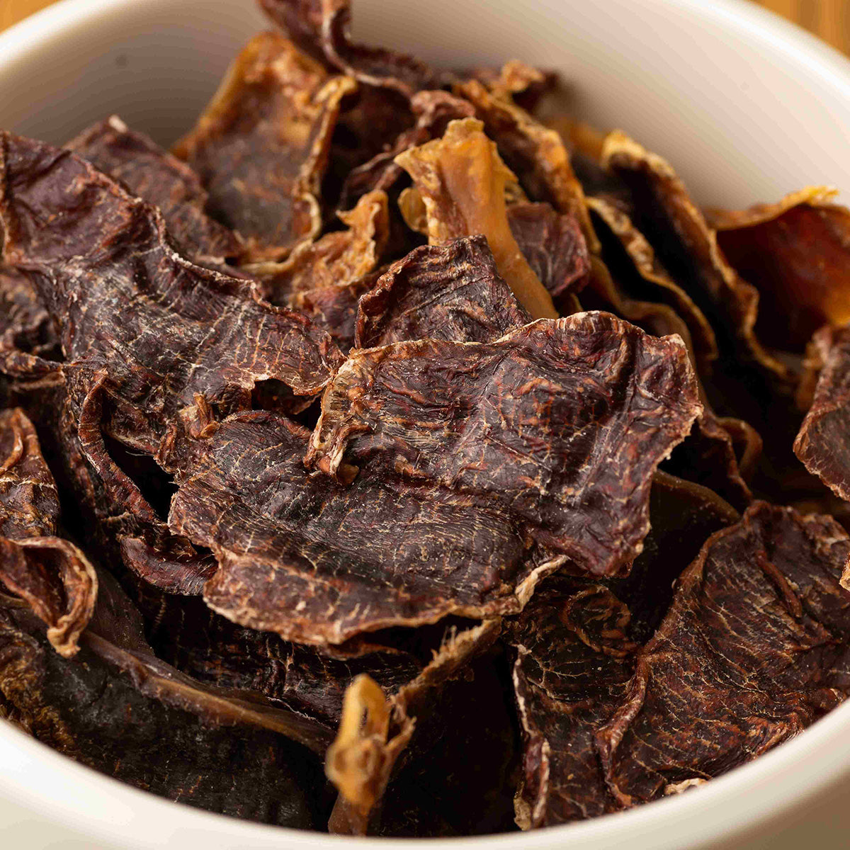 | 低温・じっくり乾燥させた無添加・ヒューマンハイグレード。しかも、肉類は薄切り。手で裂けるので老犬にも食べやすい比内地鶏の肝です。柔らかいので、老犬にもおすすめ。鉄分の補給にも向いています。 ン・鉄分・コラーゲン豊富です。 | |