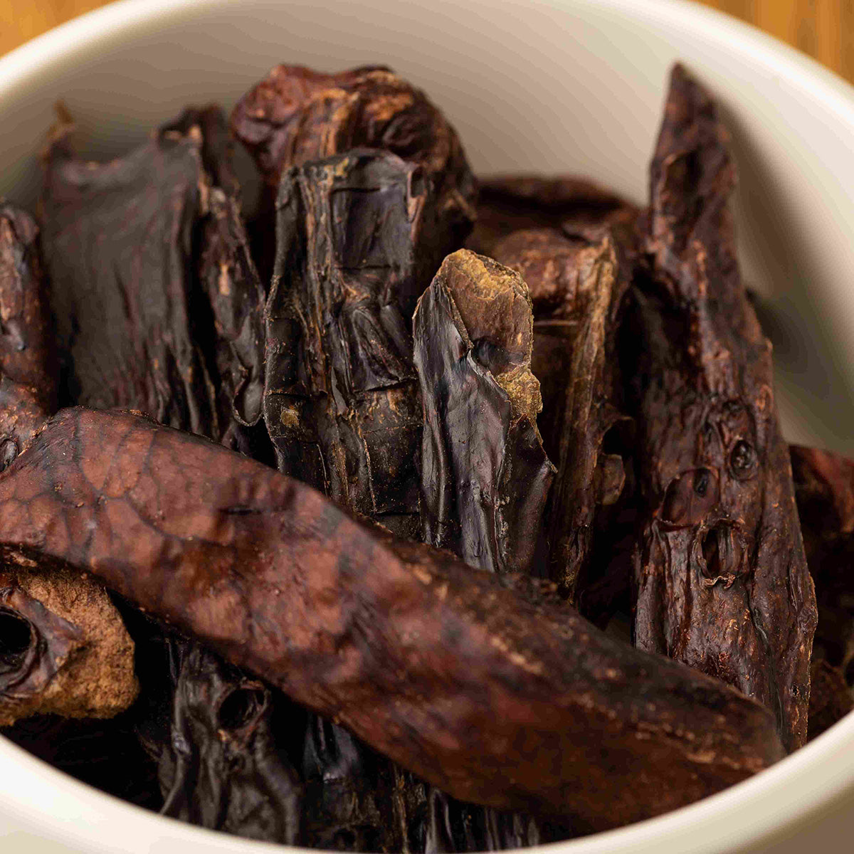 | 与えすぎにご注意ください。 丸のみしないよう、飼い主様の目の届く範囲でお与えください。 開封後は冷暗所に保管し、早めにお与えください。自然素材につき、形・サイズ・香りにバラつきが有ります。 | |