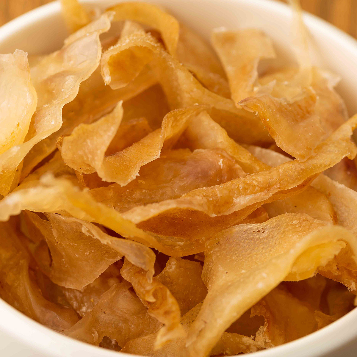 コラーゲンたっぷりの豚耳の細切り。噛み応えのあるおやつです