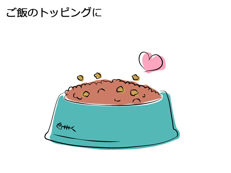 | ちぎって与えることができます。トレーニングのごほうびやおやつに、食べやすいサイズにちぎって与えて下さい。 水またはぬるま湯で戻して、水分の多い生肉食として食べることもできます。 非常に嗜好性が高いため、お食事のトッピング(ふりかけ)としてご利用いただくこともできます。お食事のグレードが上がり、食が細いワンちゃん猫ちゃんにも、お薦めのアイデアです。 | |