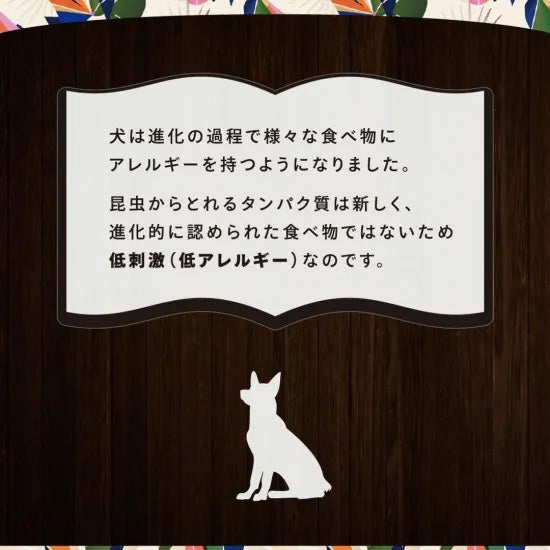 『グルテンフリー』アレルギーの原因になりやすい小麦、グルテン、イースト菌等の原材料は一切含まれておりません。 お肉・お魚が食べられない愛犬にも安心して与える事が出来ます。 『アレルギーになりにくい』次世代タンパク資源といわれる昆虫は、ほかのタンパク資源と異なり消化の良い低刺激性。 市販のビーフやチキン主体のドッグフードが食べられないワンちゃんにもOK!『総合栄養食 』本品は、ペットフード公正取引協議会の基準を満たしています。 | |