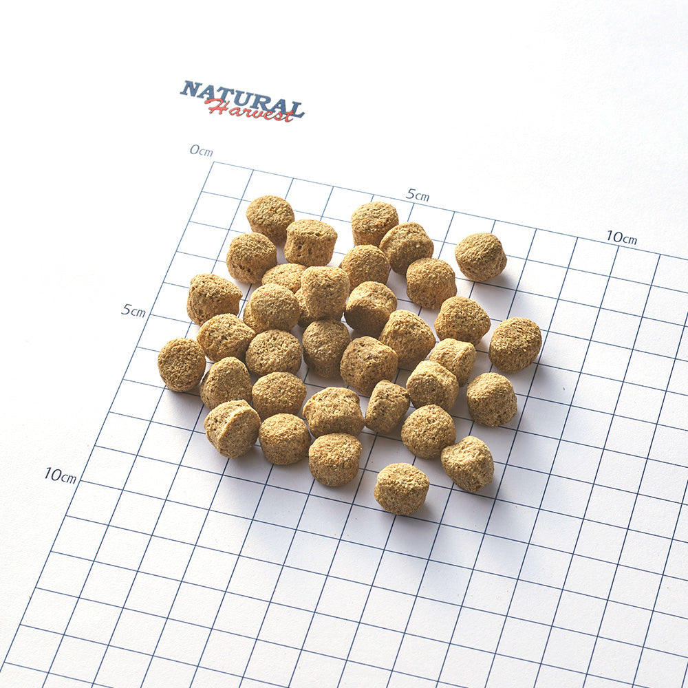 原材料 | チキンミール(米国)、精製白米(米国)、メンハーデンミール(ブラジル)、玄米(米国)、セルロース(米国)、ポテト(米国)、オーツ胚芽(米国)、酵素分解チキンエキス(米国)、えんどう豆繊維(米国)、大麦(米国)、酵母(米国)、海塩(米国)、フラクトオリゴ糖(米国)、キレート亜鉛(米国)、キレート鉄(米国)、グルコサミン塩酸塩(インド)、コンドロイチン硫酸塩(米国)、ユッカ抽出物(米国)、ビタミンE(スイス)、キレート銅(メキシコ)、キレートマンガン(メキシコ)、L-カルニチン(米国、アルゼンチン)、ナイアシン(米国、インド)、セレン酸ナトリウム(米国)、パントテン酸カルシウム(スコットランド)、リボフラビン(ドイツ、韓国)、ビタミンA(スイス)、ビオチン(米国、フランス)、硝酸チアミン(ドイツ)、ビタミンD3(フランス)、塩酸ピリドキシン(ドイツ)、ビタミンB12(フランス)、ヨウ化カルシウム(カナダ、米国)、葉酸(フランス)、アシドフィルス菌(米国)、フェシウム菌(米国)、カゼイ菌(米国)、プランタルム菌(米国)、酸化防止剤(ローズマリー抽出物)(米国) |