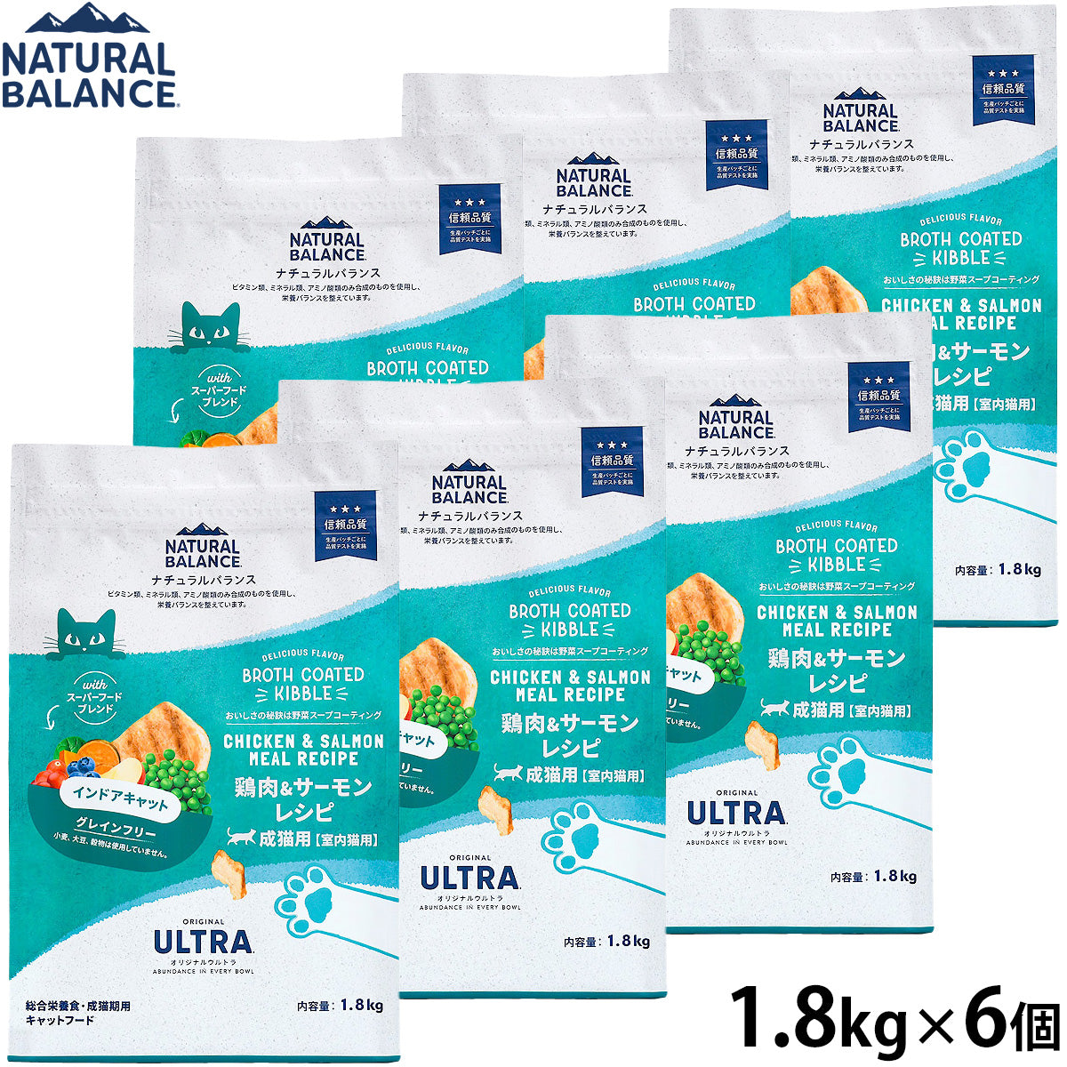 ナチュラルバランス キャットフード オリジナルウルトラ 成猫用 鶏肉&サーモン インドアキャット 1.8kg×6個セット