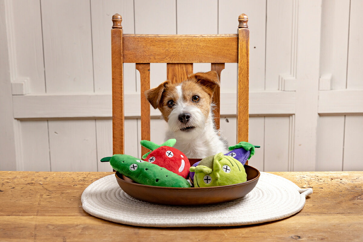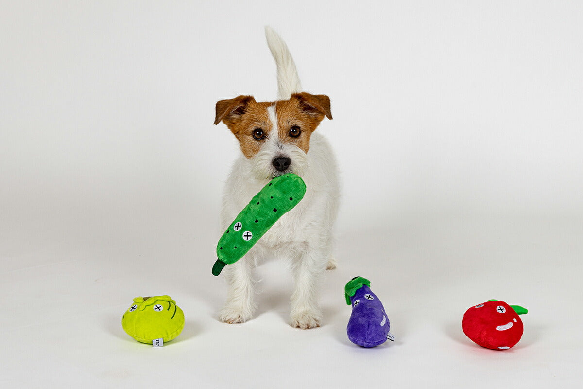プラッシュトイに野菜シリーズが登場。キューキュー鳴るスクイーカー入りで、噛んだり振り回したり厚めの織生地で遊びが長持ちするドッグトイです。やさしい肌触りでぬいぐるみトイが大好きなわんちゃんにおすすめです。小型のわんちゃんに最適なサイズ感。やさしい肌触りでぬいぐるみトイが大好きなわんちゃんにおすすめです。