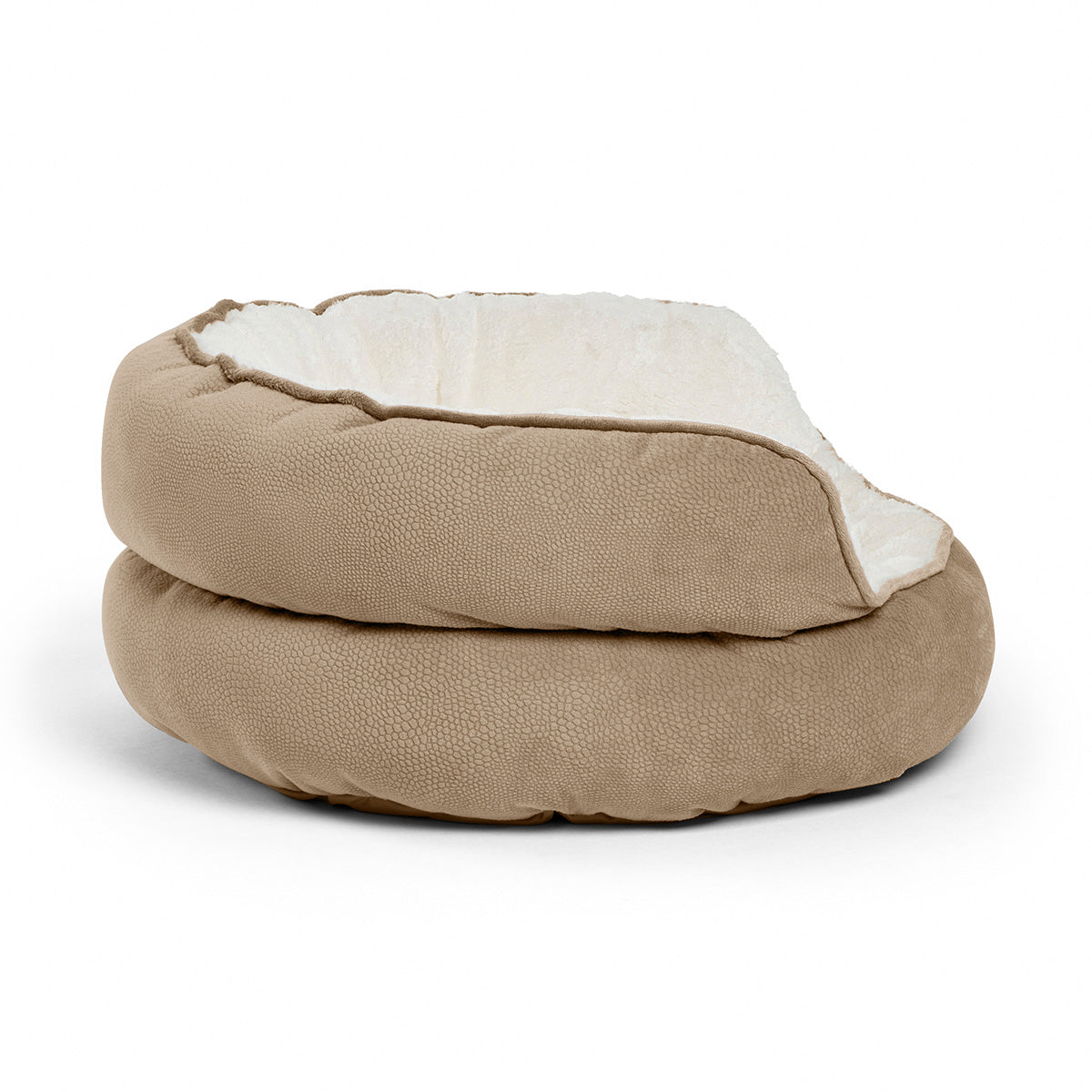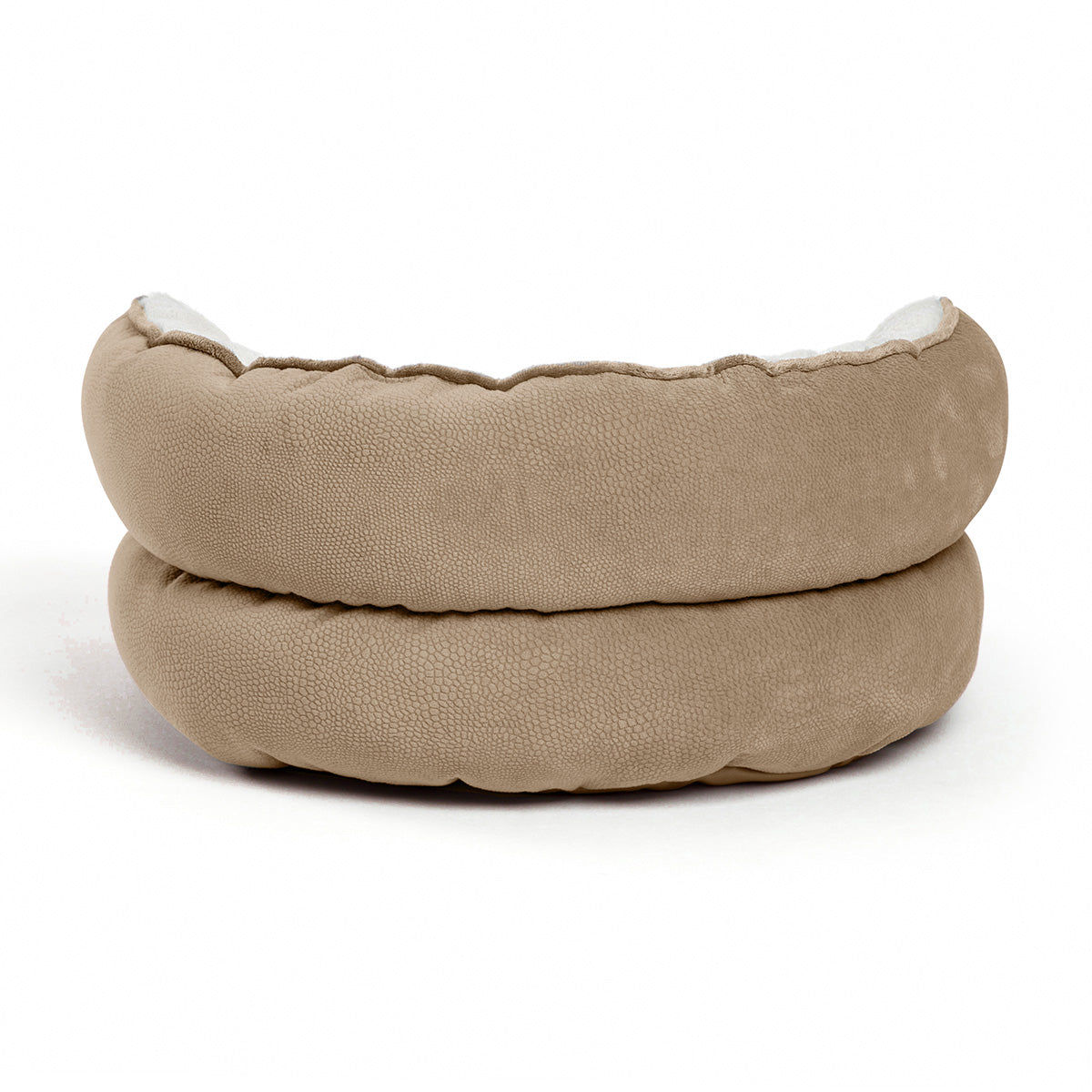 ペットをやさしく包み込み、心地よいくつろぎを届けるデザイン。高品質・高密度の柔らかい中綿は偏りにくく、ベッドの形状・快適性を保ちます。やわらかく美しいニュートラルカラーは、インテリアにもよく馴染みます。