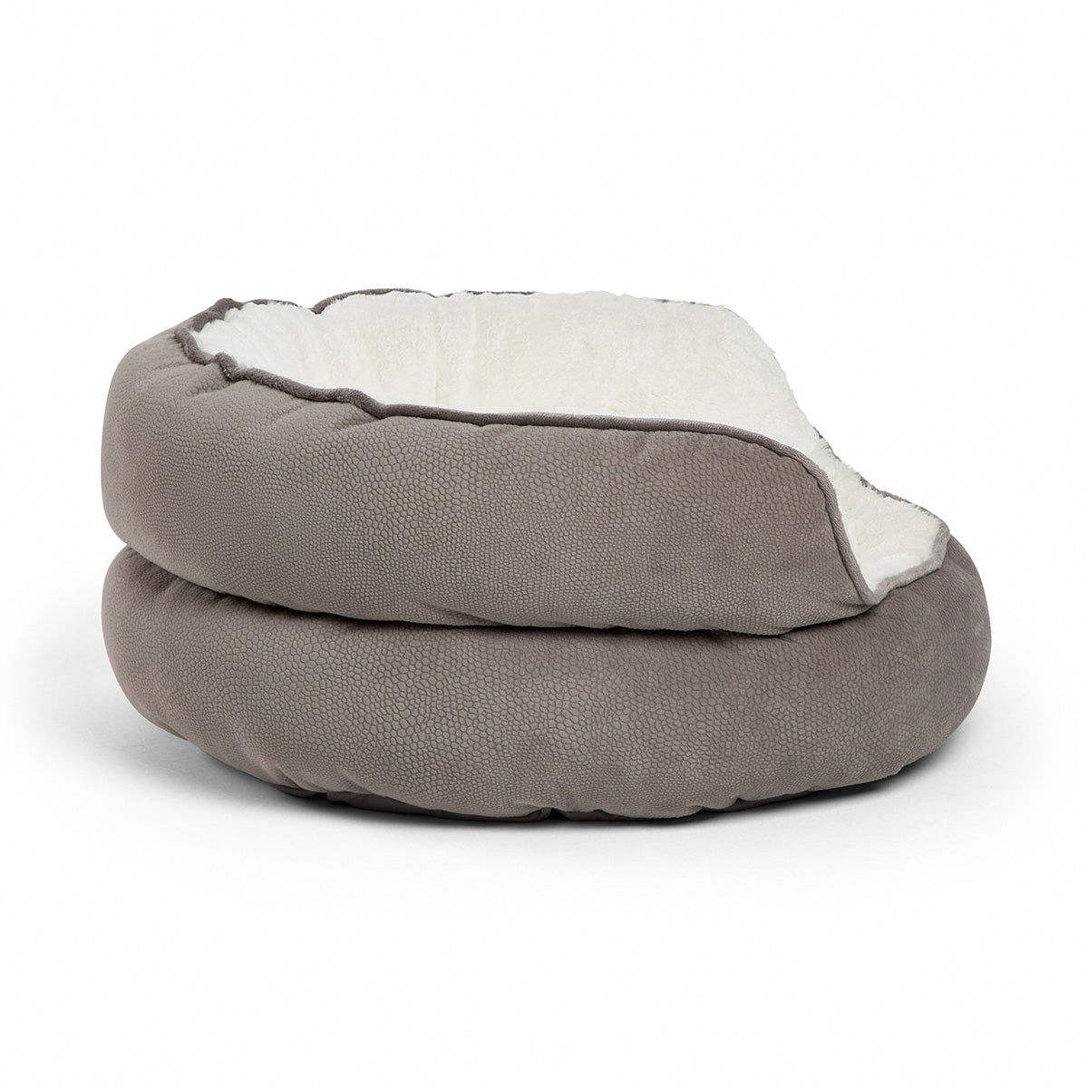 ペットをやさしく包み込み、心地よいくつろぎを届けるデザイン。高品質・高密度の柔らかい中綿は偏りにくく、ベッドの形状・快適性を保ちます。やわらかく美しいニュートラルカラーは、インテリアにもよく馴染みます。