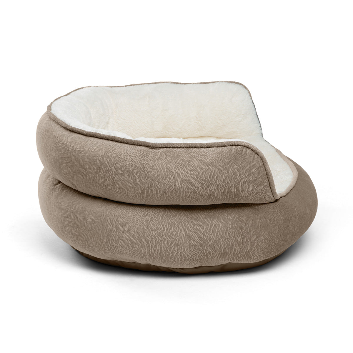 ペットをやさしく包み込み、心地よいくつろぎを届けるデザイン。高品質・高密度の柔らかい中綿は偏りにくく、ベッドの形状・快適性を保ちます。やわらかく美しいニュートラルカラーは、インテリアにもよく馴染みます。