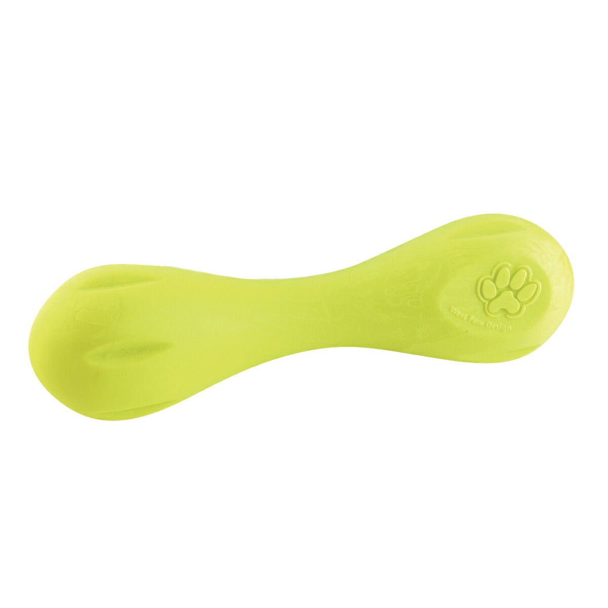 | 「ハーリー」は、木の棒の代わりになるスティック状のおもちゃ。咥えやすい形状なのでレトリーブやフェッチに最適です。水に浮くので、海や川などでも大活躍。カラフルな色だから屋外でも見失いづらいのもうれしいポイントです。丈夫さが自慢の「ゾゴフレックス」シリーズの中でも、特に頑丈な部類に入ります。すぐにおもちゃを破壊してしまうワンちゃんもカンタンには噛みちぎれない強度です。頑丈ですが柔軟性があり、独特の弾力はワンちゃんにとって楽しい噛み心地。よろこんでカミカミしてくれるはずです。BPAフリー、フタル酸フリー、ラテックスフリーなので安心してワンちゃんを遊ばせてあげられます。 | |