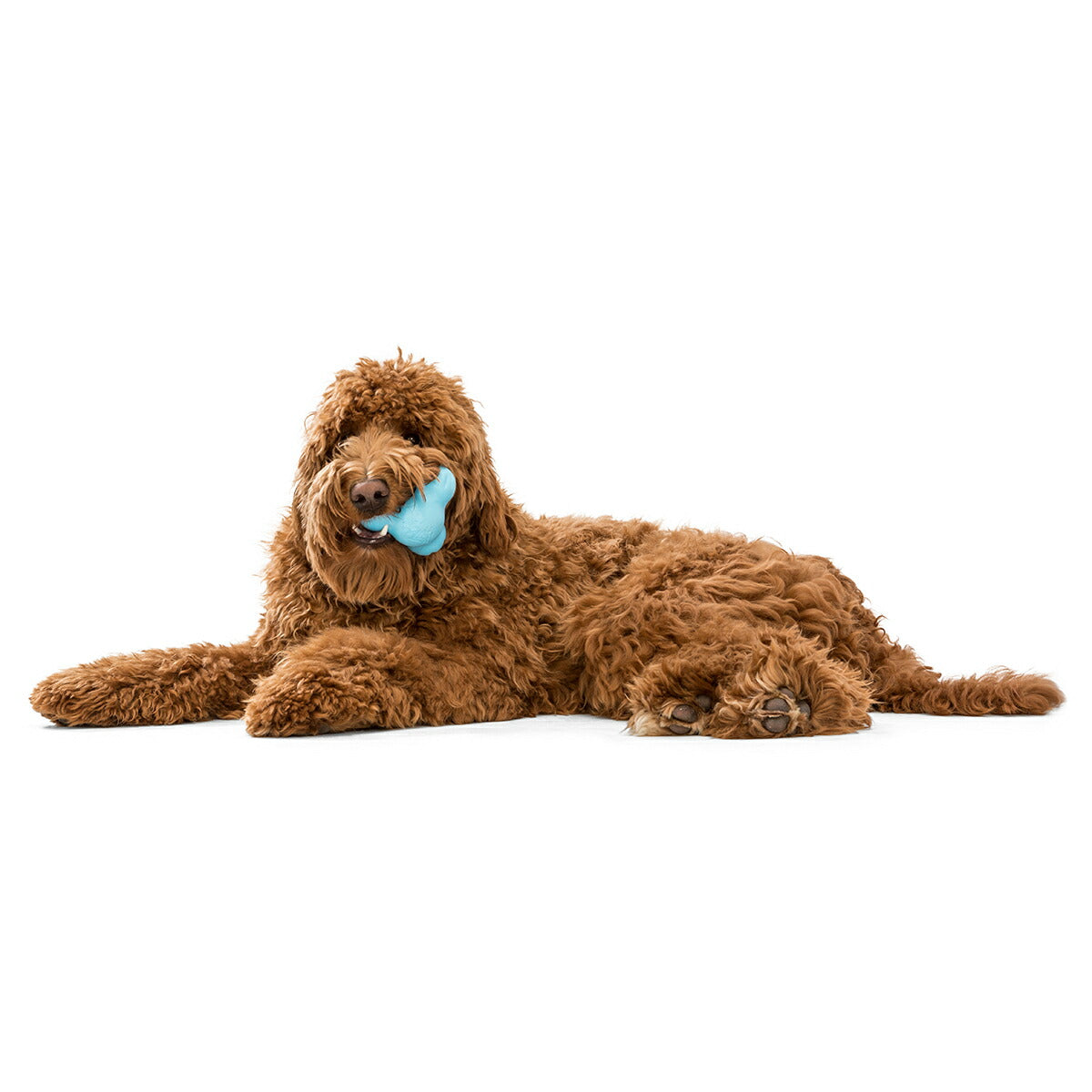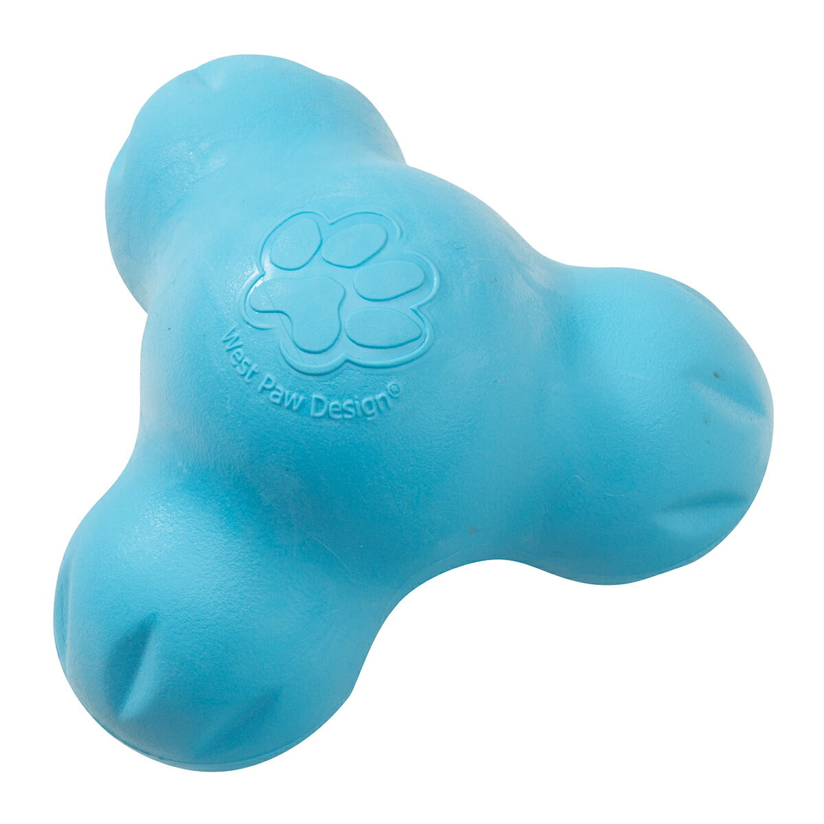 | 「タックス」はちょっと変わった形のおもちゃで、中央に空いたくぼみにフードやおやつを詰めることができます。くぼみは複雑な形をしており、なかなか中身を取り出すことができないのでワンちゃんを夢中にさせます。粒状のドライフードやクッキーなどはもちろん、ヨーグルトやペースト状のおやつを詰めてもOK。そのまま凍らせれば、暑い季節にぴったりのおもちゃになります。また、通常の丸いボールよりも不規則にバウンドするので、ボール遊びに使うのもオススメです。「ゾゴフレックス」シリーズのおもちゃは、とにかく丈夫なのが自慢。タックスはシリーズの中でも特に丈夫な部類に入り、噛む力が強いワンちゃんも簡単には壊せません。それでいて柔軟性もあり、独特の弾力はワンちゃんにとって楽しい噛み心地。BPAフリー、フタル酸フリー、ラテックスフリーなので安心してワンちゃんを遊ばせてあげられます。 | |