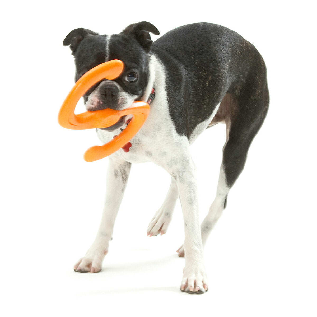 | 「ブーミ」はS字型をしたおもちゃ。咥えやすい形をしているうえ、やわらかくしなって伸びるので引っ張りっこに最適。端と端を引っ張ると約2倍の長さにまで伸びます。ゾゴフレックス製なので、もちろん頑丈。I字になるように伸ばしたり、ねじったりしても元の形に戻ります。水に浮くので、川や海などでのフェッチ(とってこい)遊びにもオススメ。「ゾゴフレックス」シリーズのおもちゃは、とにかく丈夫なのが自慢。それでいて柔軟性があり、独特の弾力はワンちゃんにとって楽しい噛み心地。BPAフリー、フタル酸フリー、ラテックスフリーなので安心してワンちゃんを遊ばせてあげられます。 | |