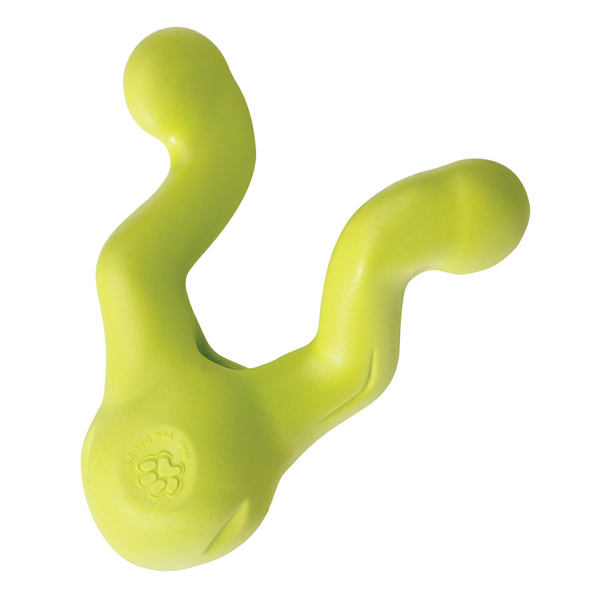 | 「ティジー」はふたつの足がついたような形状をした、ユニークな見た目のおもちゃ。フェッチ(とってこい)遊びはもちろん、足の部分を持って引っ張りっこもできます。足の部分をねじって飛ばすとまた違う飛び方をするのでワンちゃんを飽きさせません。中にフードやおやつを入れれば、知育玩具としても。フードを入れて足をねじっておくと、簡単には中身を取り出せなくなります。「ゾゴフレックス」シリーズのおもちゃは、とにかく丈夫なのが自慢。それでいて柔軟性があり、独特の弾力はワンちゃんにとって楽しい噛み心地。BPAフリー、フタル酸フリー、ラテックスフリーなので安心してワンちゃんを遊ばせてあげられます。 | |