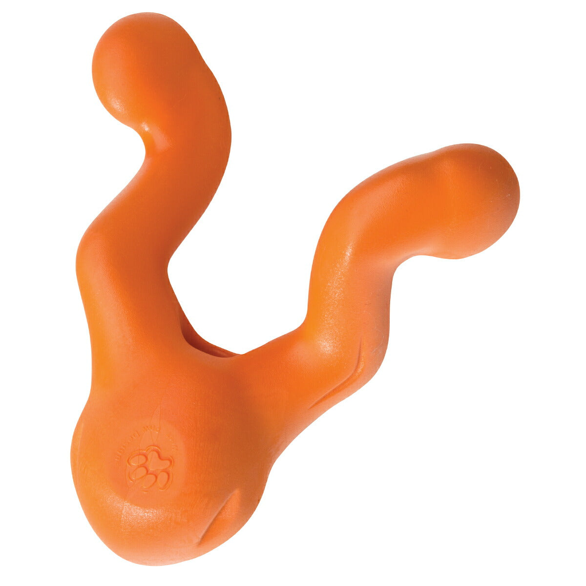 | 「ティジー」はふたつの足がついたような形状をした、ユニークな見た目のおもちゃ。フェッチ(とってこい)遊びはもちろん、足の部分を持って引っ張りっこもできます。足の部分をねじって飛ばすとまた違う飛び方をするのでワンちゃんを飽きさせません。中にフードやおやつを入れれば、知育玩具としても。フードを入れて足をねじっておくと、簡単には中身を取り出せなくなります。「ゾゴフレックス」シリーズのおもちゃは、とにかく丈夫なのが自慢。それでいて柔軟性があり、独特の弾力はワンちゃんにとって楽しい噛み心地。BPAフリー、フタル酸フリー、ラテックスフリーなので安心してワンちゃんを遊ばせてあげられます。 | |