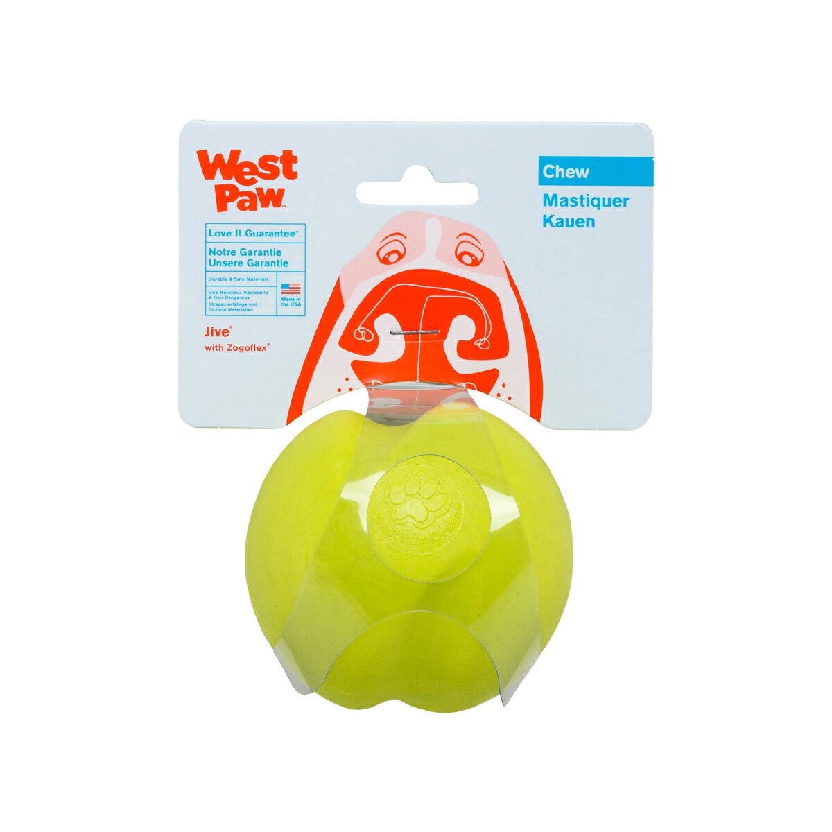 | 「ジャイヴ」は中央に溝が入ったボール。しっかりとした重みがあり、投げるとよく弾みます。中央の溝のおかげで不規則にバウンドするので、いつものボール遊びがさらに盛り上がります。水に浮くので、海や川などでのフェッチ(取ってこい)やレトリーブにもぴったり。丈夫さが自慢の「ゾゴフレックス」シリーズの中でも、特に頑丈。すぐにおもちゃを破壊してしまうワンちゃんもカンタンには噛みちぎれない強度です。それでいて柔軟性もあり、独特の弾力はワンちゃんにとって楽しい噛み心地。口の中を傷つけることもありません。BPAフリー、フタル酸フリー、ラテックスフリーなので安心してワンちゃんを遊ばせてあげられます。 | |