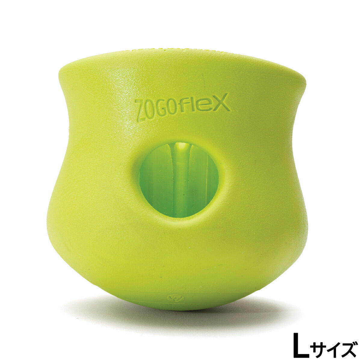 | 「タップル」は中にフードやおやつを入れられる知育玩具。丸い形をしているので、ボールのように投げて遊ぶこともできます。中に入れるフードやおやつは粒状のもの、スティック状のもの、どちらでもOK。内側に施されたギザギザ突起(ティーストラップ)に挟むようにしてフードを入れてあげると、取り出しにくくなります。ざぶざぶ丸洗いできるので、ウェットフードなどペースト状のおやつを詰めたり塗ったりするのもオススメです。また、Lサイズの中にSサイズが入るようになっており、ふたつを組み合わせることでさらに難易度アップ!ワンちゃんを飽きさせずに長時間遊ばせることができます。「ゾゴフレックス」シリーズのおもちゃは、とにかく丈夫なのが自慢。それでいて柔軟性もあり、独特の弾力はワンちゃんにとって楽しい噛み心地。BPAフリー、フタル酸フリー、ラテックスフリーなので安心してワンちゃんを遊ばせてあげられます。 | |
