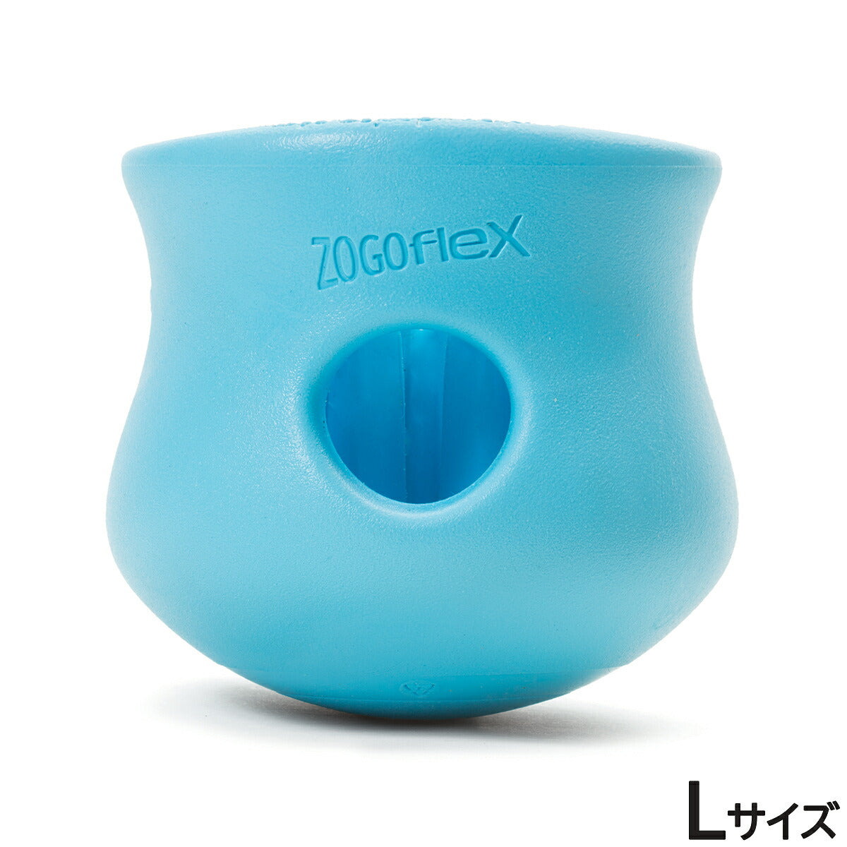 | 「タップル」は中にフードやおやつを入れられる知育玩具。丸い形をしているので、ボールのように投げて遊ぶこともできます。中に入れるフードやおやつは粒状のもの、スティック状のもの、どちらでもOK。内側に施されたギザギザ突起(ティーストラップ)に挟むようにしてフードを入れてあげると、取り出しにくくなります。ざぶざぶ丸洗いできるので、ウェットフードなどペースト状のおやつを詰めたり塗ったりするのもオススメです。また、Lサイズの中にSサイズが入るようになっており、ふたつを組み合わせることでさらに難易度アップ!ワンちゃんを飽きさせずに長時間遊ばせることができます。「ゾゴフレックス」シリーズのおもちゃは、とにかく丈夫なのが自慢。それでいて柔軟性もあり、独特の弾力はワンちゃんにとって楽しい噛み心地。BPAフリー、フタル酸フリー、ラテックスフリーなので安心してワンちゃんを遊ばせてあげられます。 | |