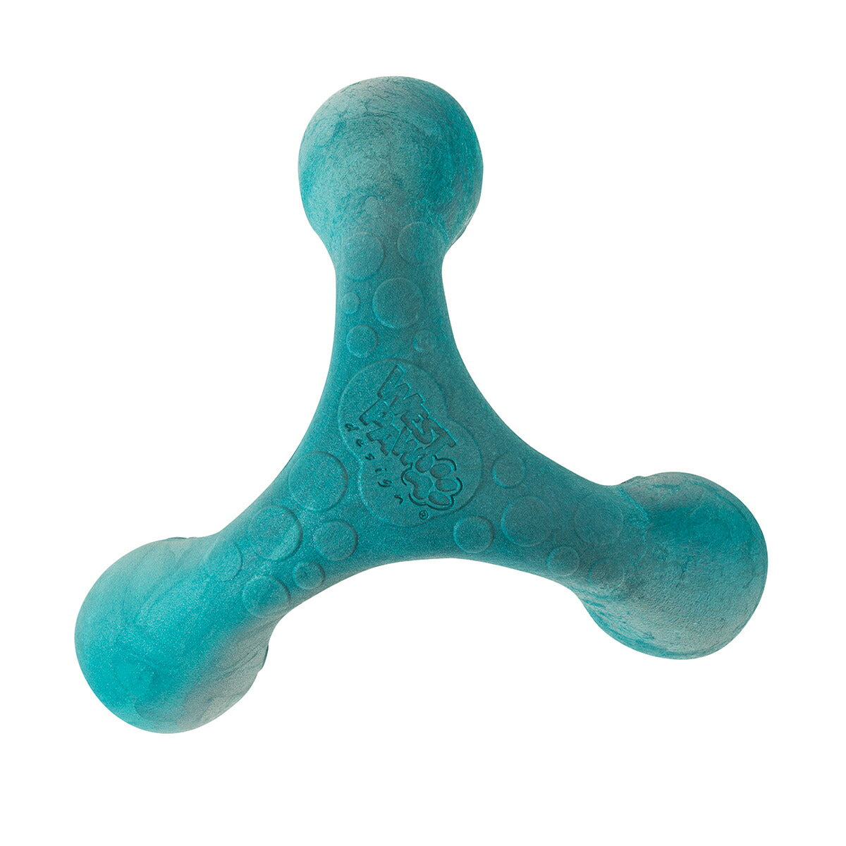3つ足の形がユニークな犬用おもちゃ。いろいろな方向にバウンドするからワンちゃんも飽きずに遊べます。「ゾゴフレックス」に空気の泡を入れたことで軽くやわらかくなっています。