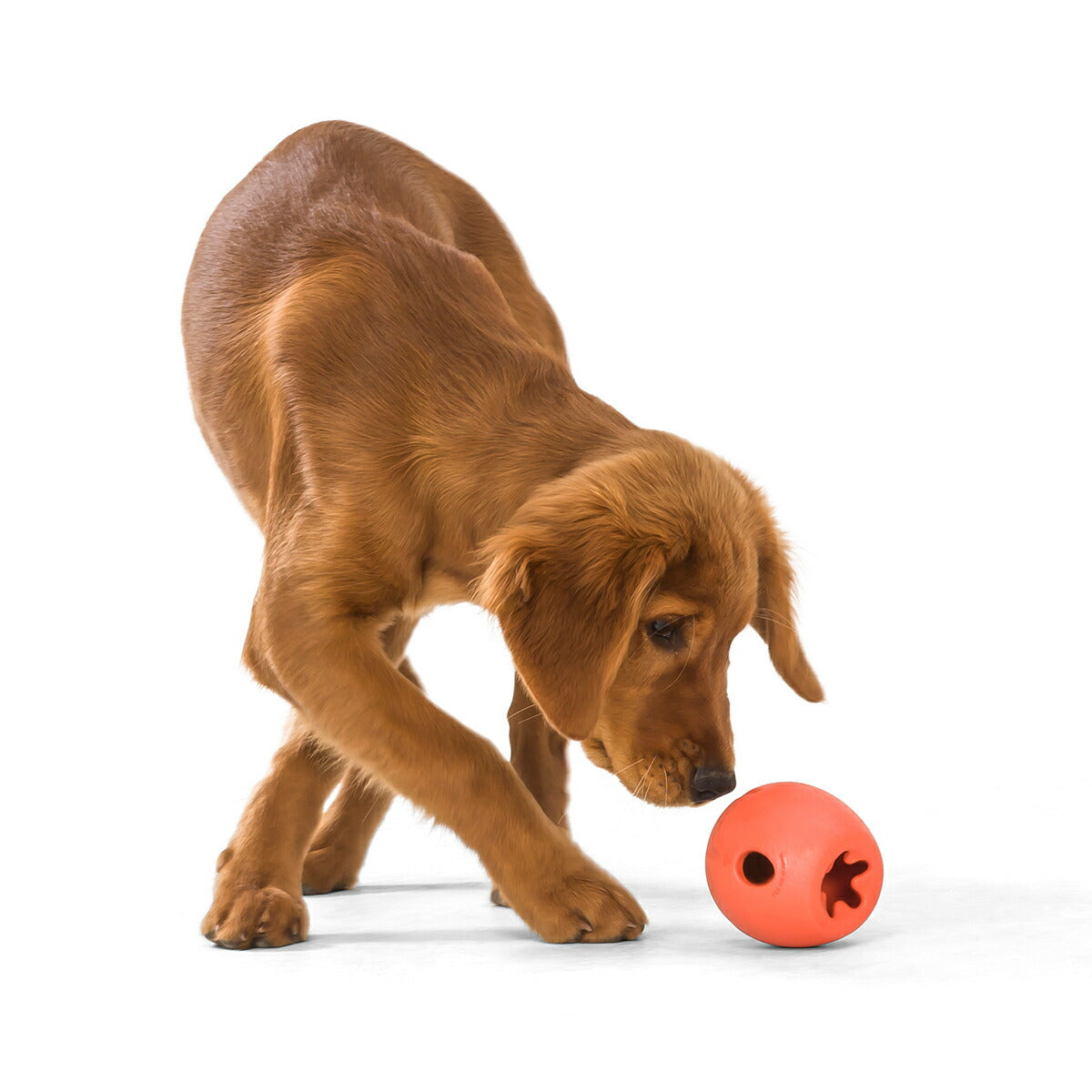 中が空洞になっていて、転がすとゆらゆら不安定に揺れる犬用おもちゃ。底面にくぼみがあり、やわらかく弾力性があり、かつ丈夫なので、噛んで遊べます。また、中にはドライフードやおやつを入れられます(ウェットフードは使用できません)。中身が取り出しづらいので、早食いしがちなワンちゃんでも食べるのに時間がかかります。知育玩具や早食い防止のフードボウル代わりにもおすすめです。